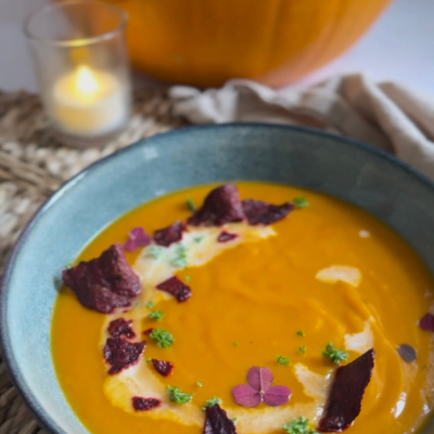 Kiedy dni stają się coraz krótsze i zimniejsze nawet kolory na talerzu odzwierciedlają zmieniającą się naturę i krajobraz. Wtedy dania z surowymi warzywami i owocami ustępują miejsca gotowanym, pieczonym i rozgrzewającym potrawom. Nawet padający za oknem deszcz oraz wiatr unoszący spadające liście dają nam znać, że czas na treściwą zupę krem. O tej porze roku  szczególnie chętnie jadam na kolację krem z dyni.